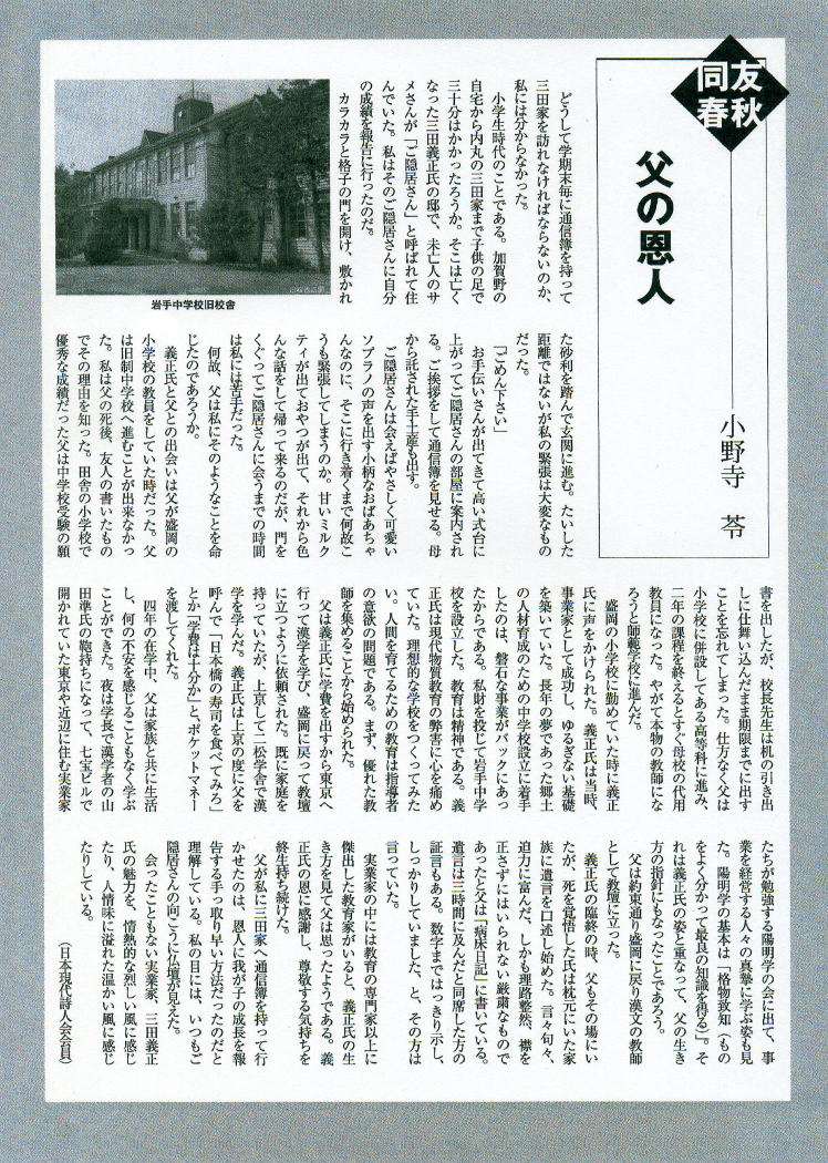 小野寺 苓さんには、三田 循司関係の資料収集に大変お世話になりました。有難うございました。