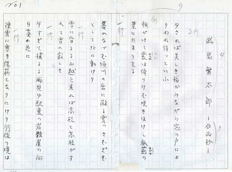 武島 繁太郎(武田 彩吉)先生の直筆原稿 昭和42年頃