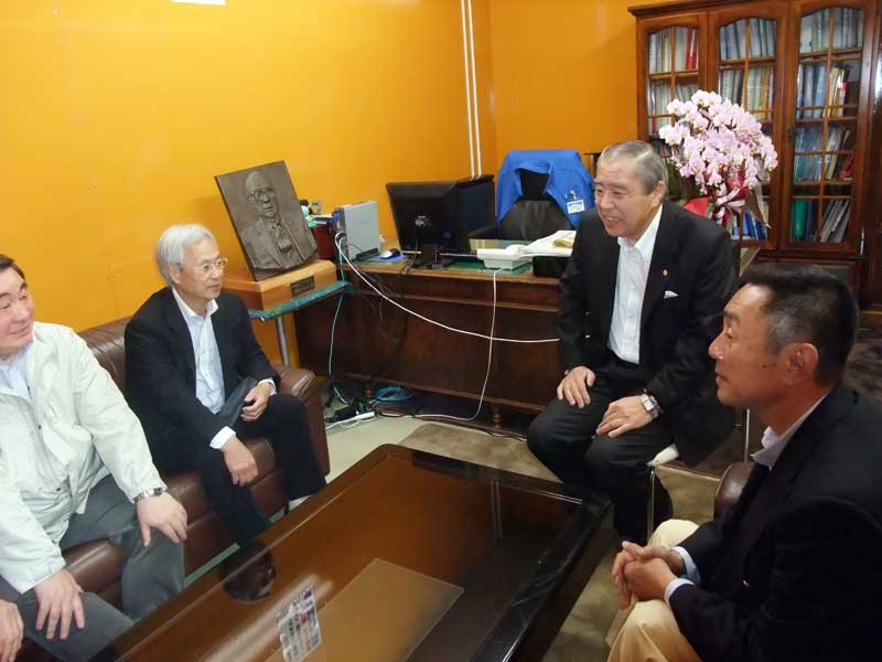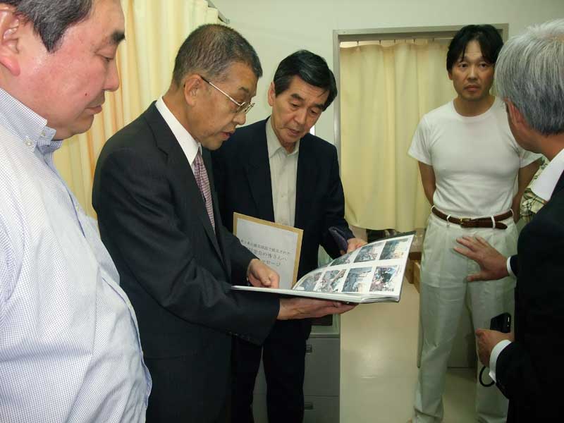 | マイヤー仮本部を訪問し、同地区同窓生名簿、激励メッセージを |