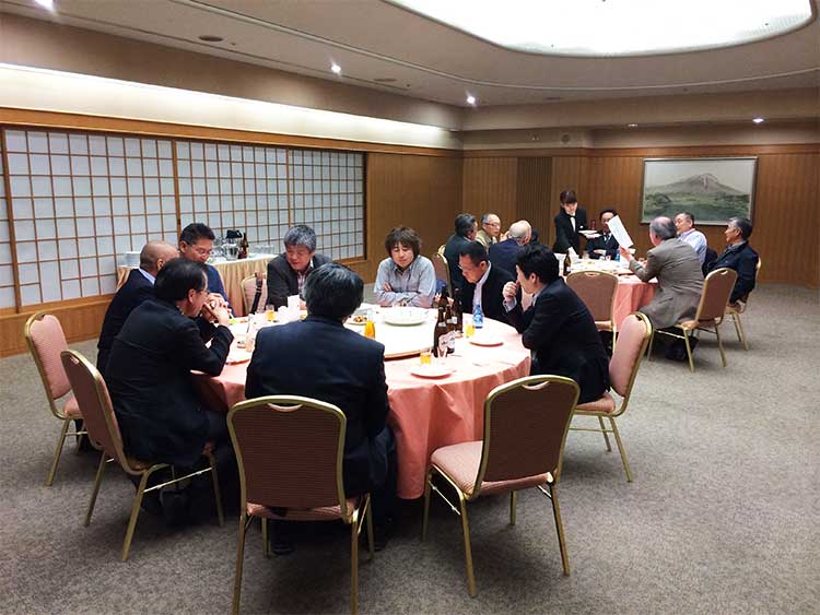 | その後、懇親会となり、世代を超えた会員の交流方法や、現役生に対する目に見える支援の方法 |