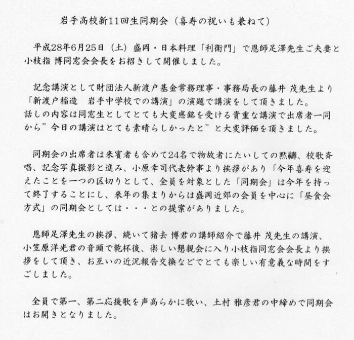 | 「新渡戸稲造 岩手中学校で講演」 |
