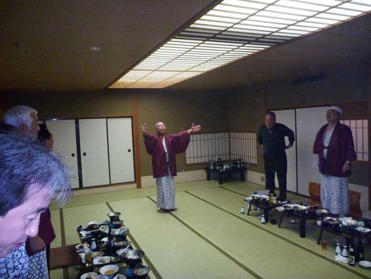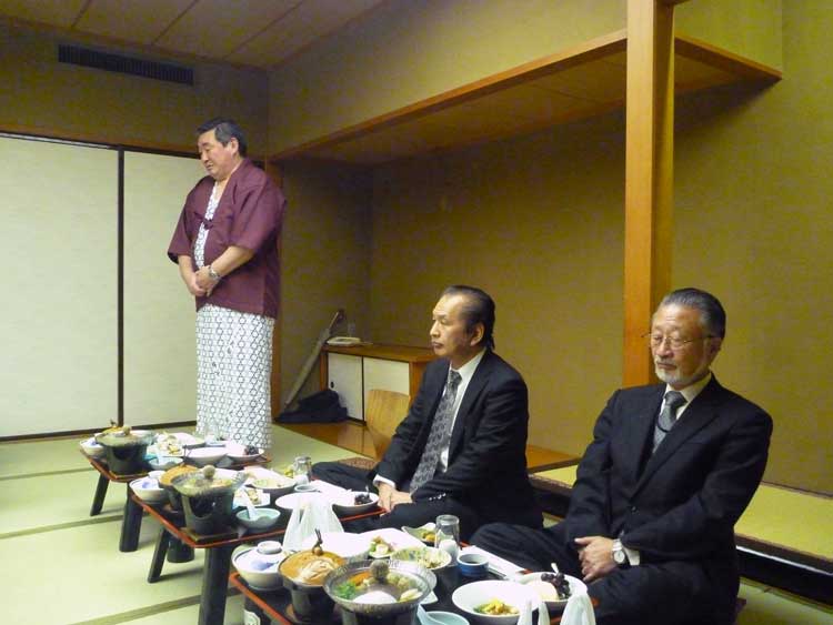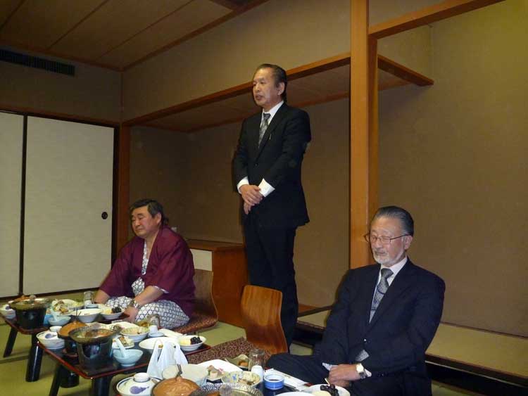 村井校長先生、前校長の菊地先生を交えて夜も更けるまで歓談しました