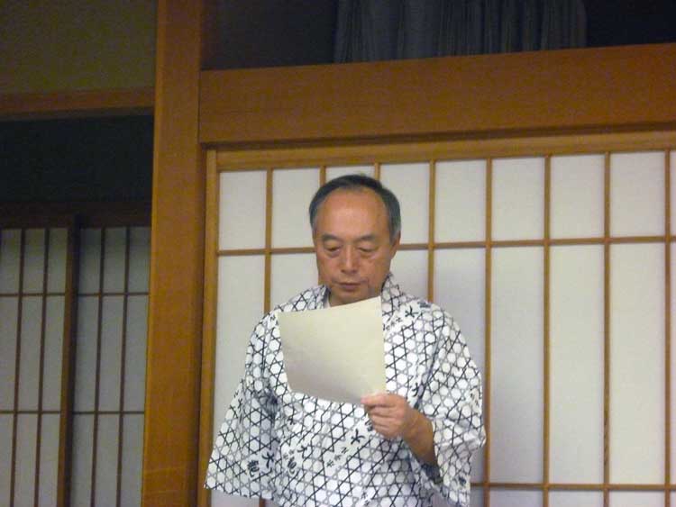 欠席者の近況報告、同級生の米谷春夫君からのメッセージ披露があり