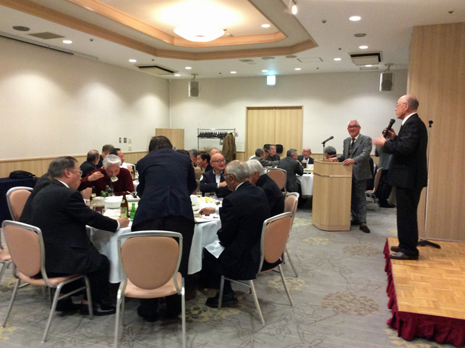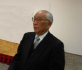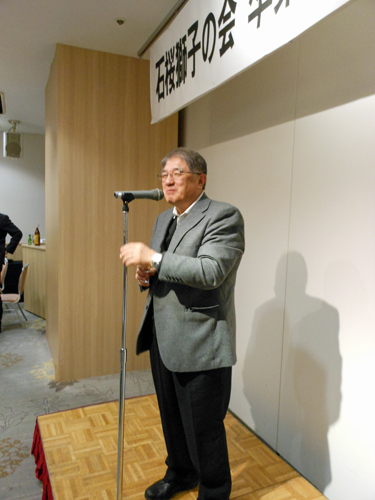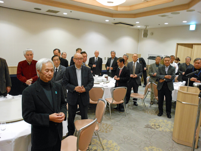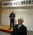 | 恩師や同級生の物故者に黙祷を捧げたのち明戸均会長の挨拶、沼田先生の祝辞があり |