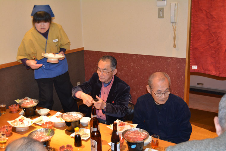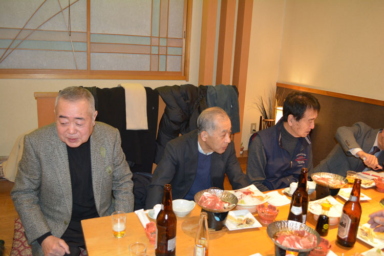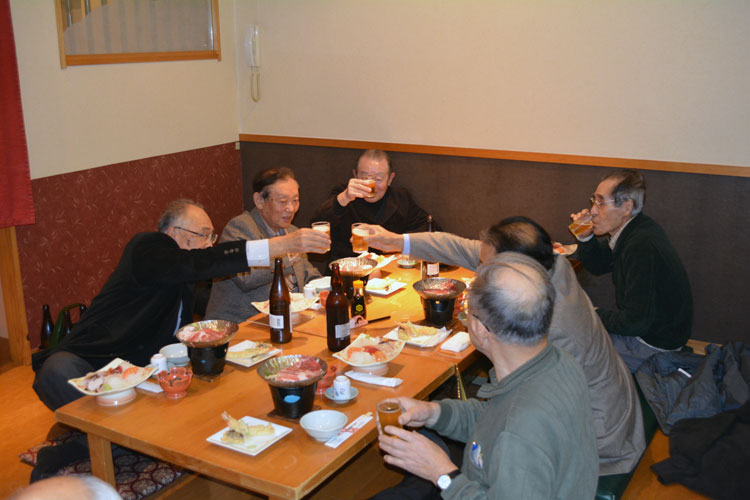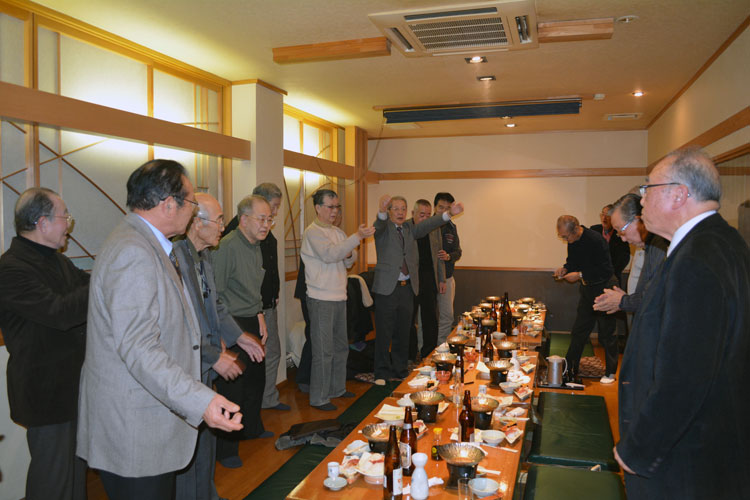 | 忘年会はお互い盃を交し合いながら、夜の更けるまで、なごやかな、とても楽しい |