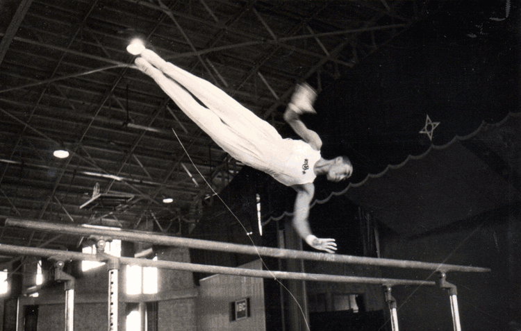 | 村上昇は卒業後、伝統ある早大体操部に入った。しにせを誇った早大もこのころから部員不足に |