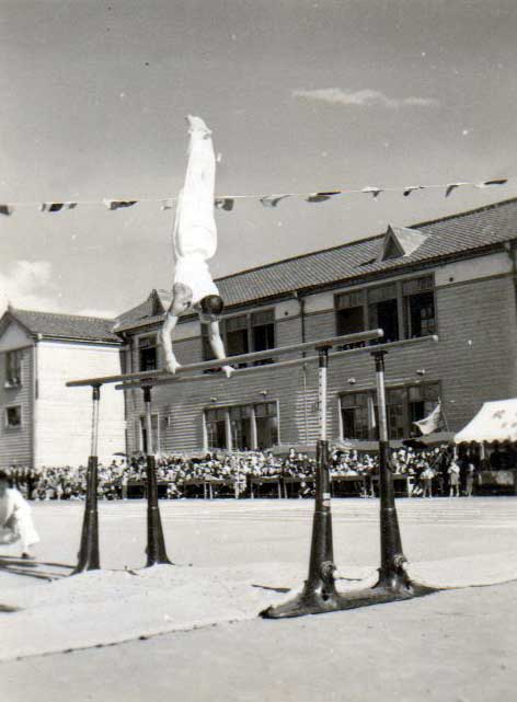 今日のようにテレビ、ビデオ等での技術習得はできず、本間茂雄の「鉄棒運動」 |
