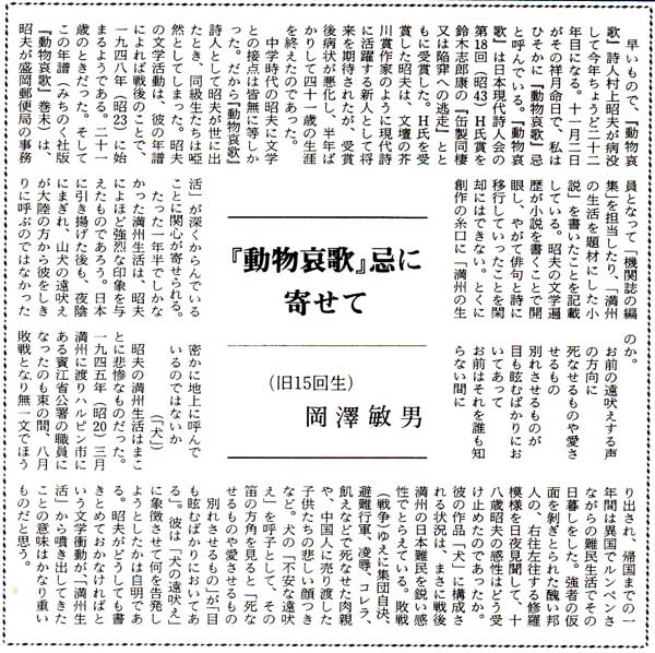村上昭夫の年譜は(日本現代詩歌文学館発行「没後30年村上昭夫『動物』への道より一部引用)