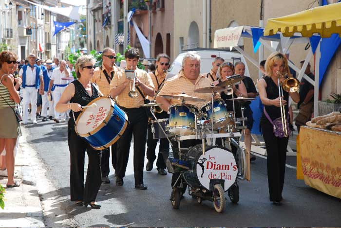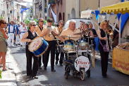 | 村の車道は通行止め楽団用に舞台が3カ所に設けられロック、カタラーニア音楽を奏で、歩道に |