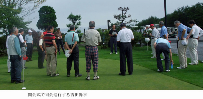 | 開会式は吉田幹事の挨拶、進行で始まり小枝指同窓会会長の挨拶、大会ルールの説明などあり記念写真 | |