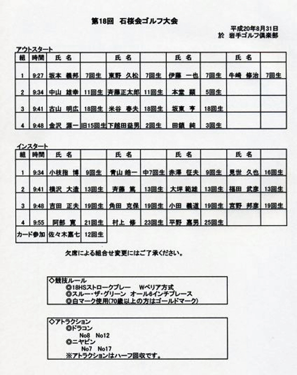 | 来年の予定は8月30日(日) 場所は岩手ゴルフクラブ新山コース | |