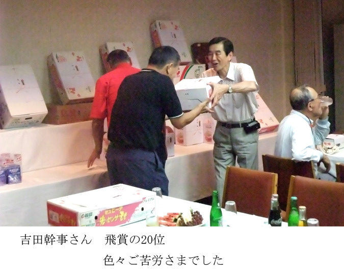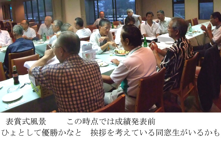 | 表彰式終了後全員で校歌2番まで元気に合唱し、楽しかったゴルフ大会無事終了し解散しました。 今回の参加者はカード参加も含めて29名でした。皆さん大会を盛り上げて頂きありがとうございました。 来年の予定は8月30日(日) 場所は岩手ゴルフクラブ新山コース 時期になりましたらこのHPでもご案内する予定ですので多くの同窓生の皆さんのご参加をお願いします。 改めて幹事の大役で大変苦労されました、吉田 正夫さんに敬意と感謝を申し上げます。 来年も宜しくお願いします。 幹事の吉田 正夫さんの連絡先 電話 090-4631-0400 |