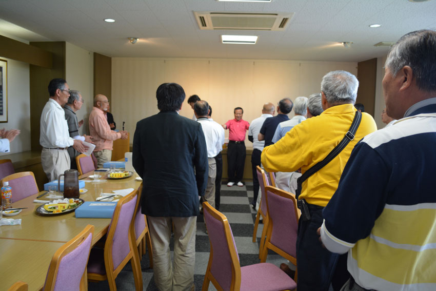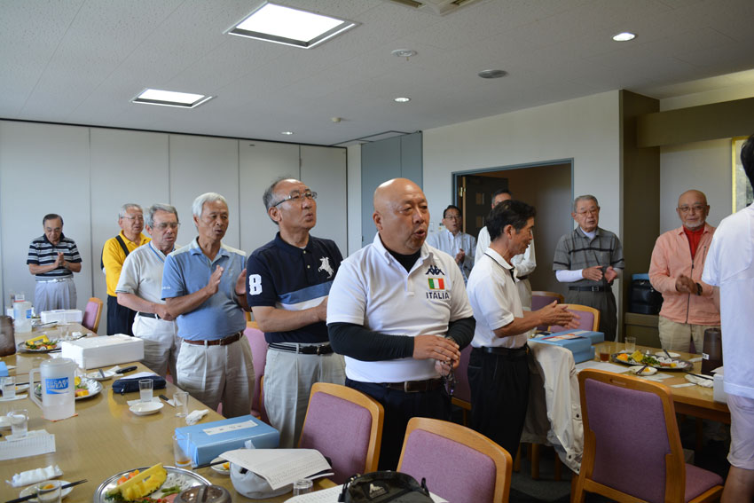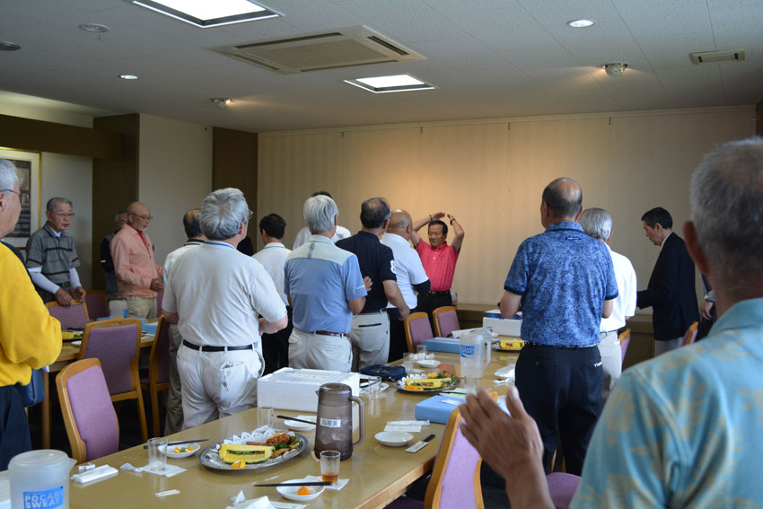 石桜ゴルフ大会表彰式で挨拶 小枝指 会長