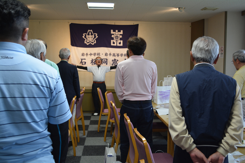 | 齋藤富夫さんの音頭で、力強く校歌斉唱 |
