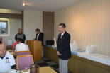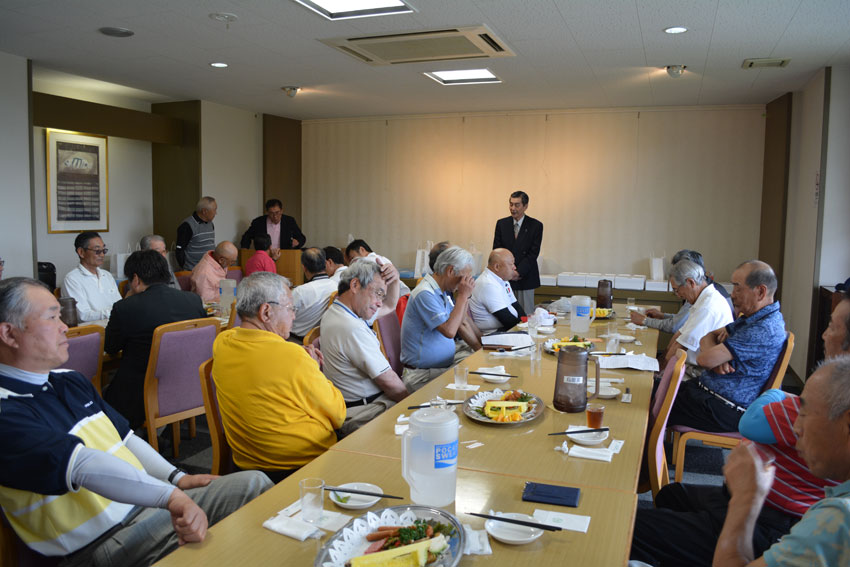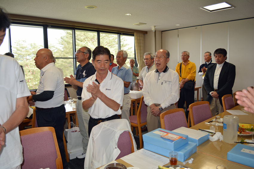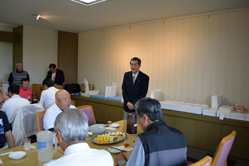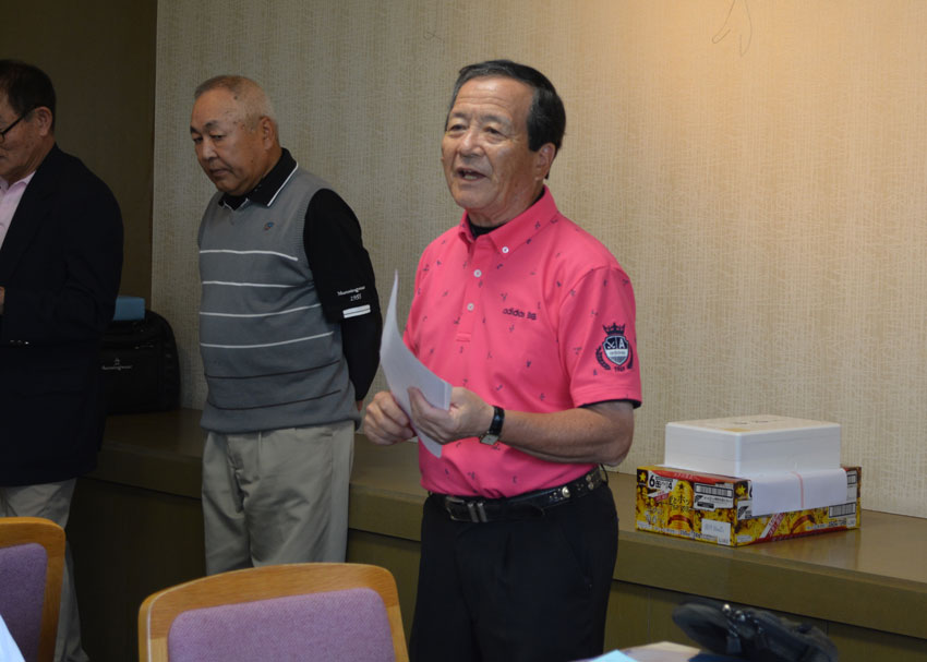 石桜ゴルフ大会表彰式で挨拶 小枝指 会長