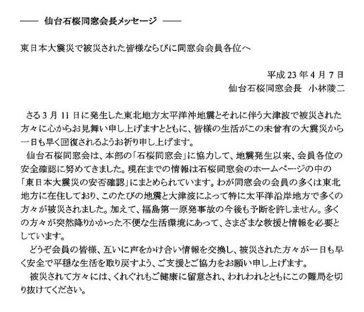 | 会長挨拶 仙台石桜同窓会 |