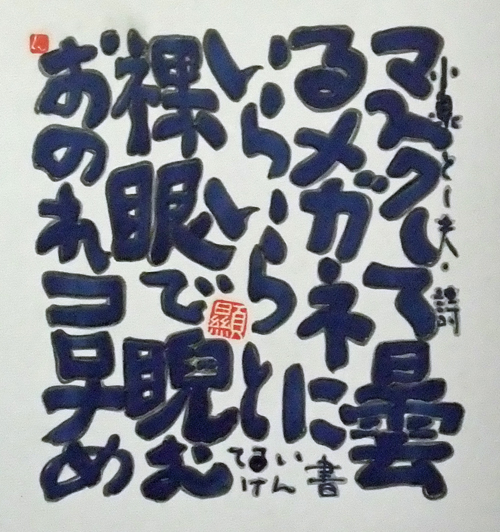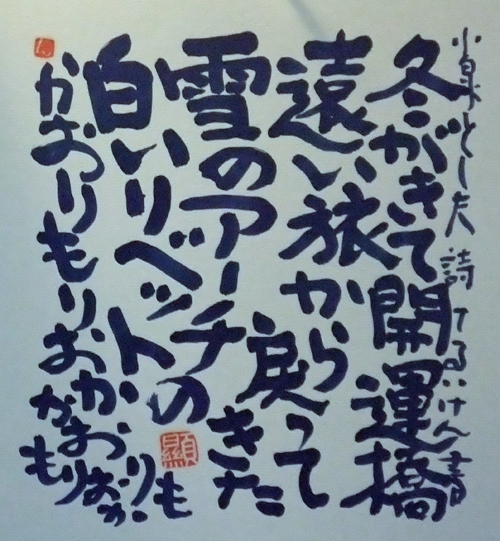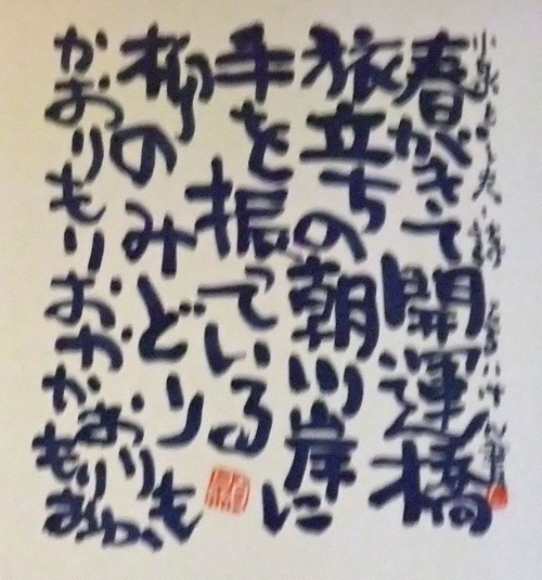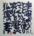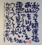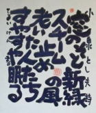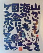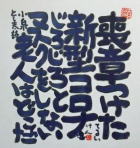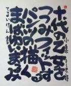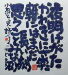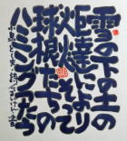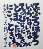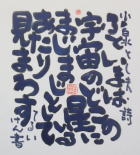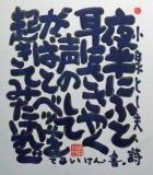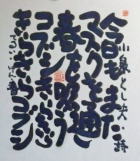 | 盛岡のCafe Jazz 「開運橋のジョニー」右利きの店主てるい けん(照井 顕)が左手で筆を持って書いた色紙 |