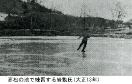 大正12年ごろ,太田(現盛岡市)の佐々木休次郎(宰郷)が、フィギュアスケートを用いて農学校田んばですべった。