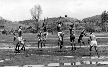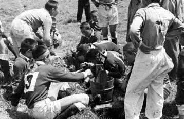 雨天での試合 昭和29年 盛岡一高グランドにて