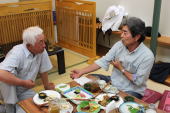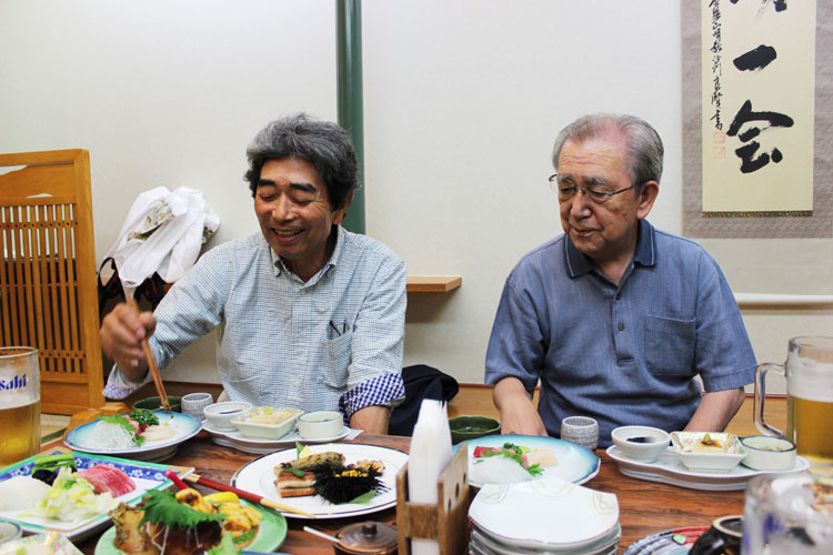 今回の「球友会納涼会」は「峠徳美絵画展」で埼玉から来盛中の峠徳美君に合せました。 |