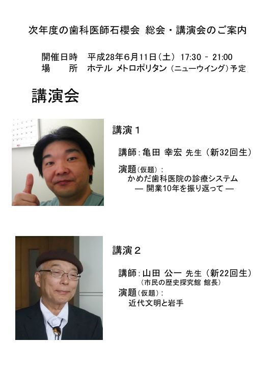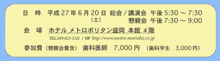 | |H27総会・講演会タイトル||H27総会パンフレット||H28総会・講演会講師紹介| | ||||||||||||||||||||||||