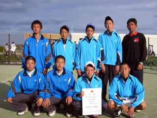 10月10.11.12日 北上市和賀川グリ−ンパ−クテニスコ−トにて第53回岩手県高等学校ソフトテニス新人大会が開催されました結果は 10日 個人 菊地尚基・渡辺悠河組 ベスト8 吉田嘉樹・宇部慧人組 ベスト16 苅宿陽希・竹内大基組 ベスト16 小笠原龍介・加藤樹組 ベスト32 県ジュニア大会・県室内大会出場権獲得 11〜12日団体 2回戦 岩手3−0遠野 3回戦 岩手2−1久慈東 準々決勝 岩手2−0黒沢尻北 準決勝 岩手2−1盛岡工 決 勝 岩手0−2黒沢尻工 県室内大会出場権獲得 監督談 生徒をほめて下さい。また厳しい練習・・・・。優勝目指しましょう。 主将談 決勝では負けてしまったが、キャプテンとしての役割を果たしたかな。確かな前進です。 選手達の一言 チ−ム一丸の戦い。悔しい。出場したかった。逆転苦しかった。集中力。我慢と冷静さ。笑顔で試合ができた