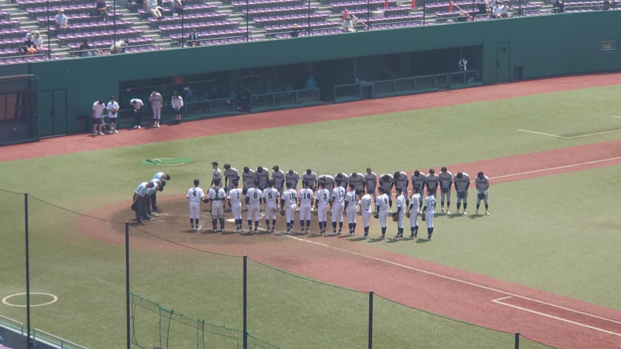 母校野球部(主将:佐々木伝心/2年、部員15名)が、7月12日(日)にきたぎんボールパークで第107回全国高等学校野球選手権岩手大会1回戦に臨み、8-6で黒沢尻工業高校に勝利し、1回戦を突破しました。