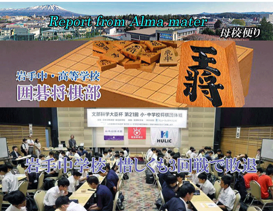2025年8月1日 / 最終更新日 : 2025年8月1日 sekiou-ob 母校便り 岩手中学校囲碁将棋部 3回戦敗退(文部科学大臣杯 第21回小・中学校将棋団体戦東日本大会) 文部科学大臣杯 第21回小・中学校将棋団体戦東日本大会日 時 : 令和7年7月29日会 場 : 大手先サンケイプラザ(東京都千代田区)第1回戦 岩手中学校 3-0 福島県代表 喜多市立塩川中学校第2回戦 岩手中学校 3-3 神奈川県代表 栄光学園中学校第3回戦 岩手中学校 0-3 東京大表 海城中学校 写真提供:東京石桜同窓会武田副会長