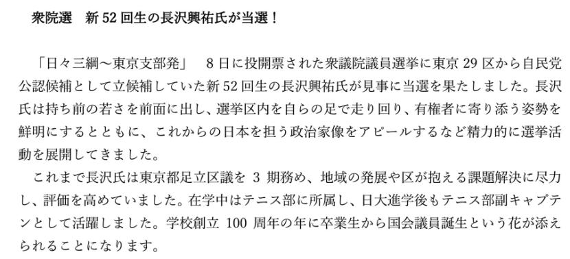 長沢興祐(新52回生)が衆議院選挙(東京29区)初陣で見事初当選!