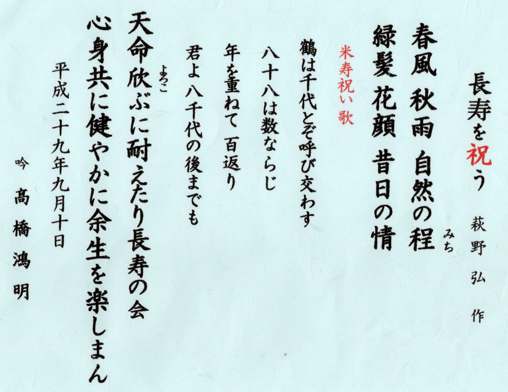| 長寿を祝う |