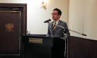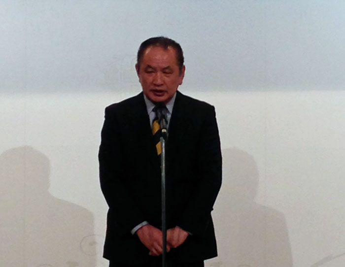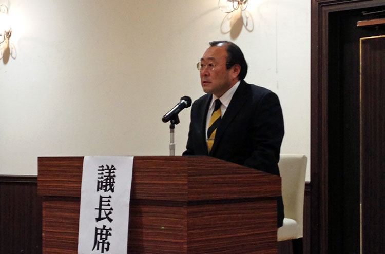 | ◇ 役員改選に伴い再任された武蔵 稹(新18回生)会長挨拶 |